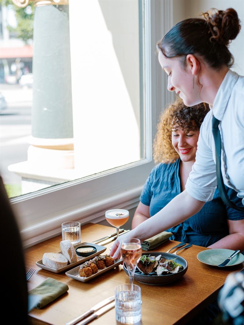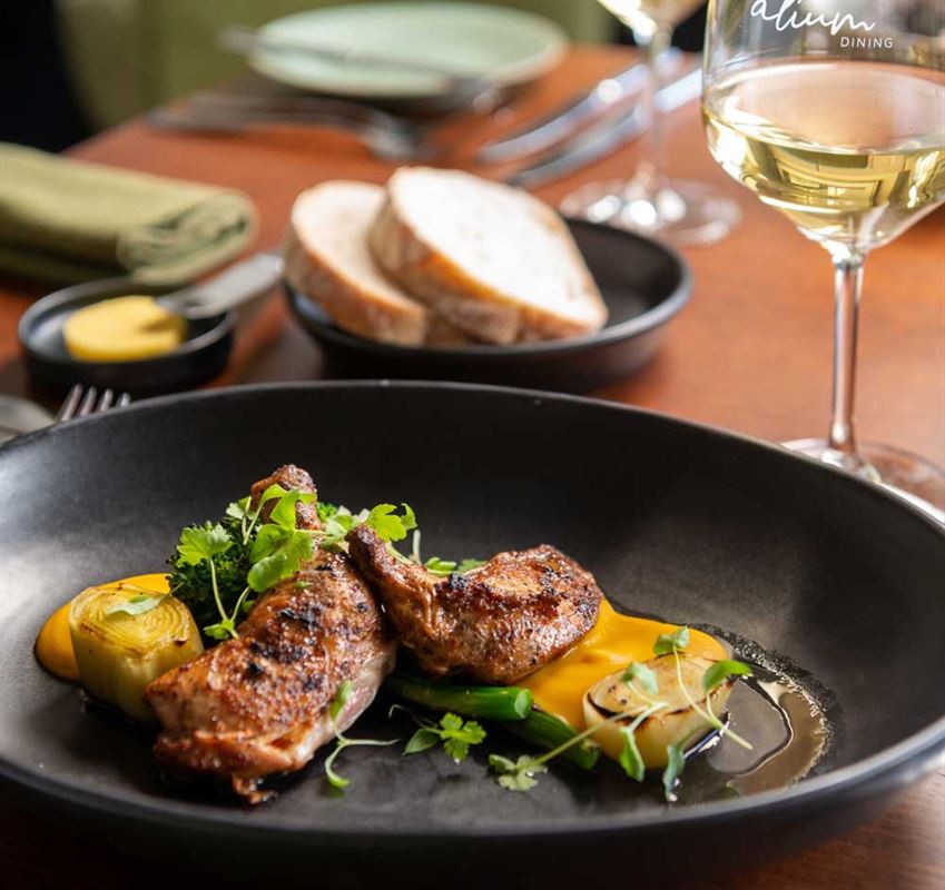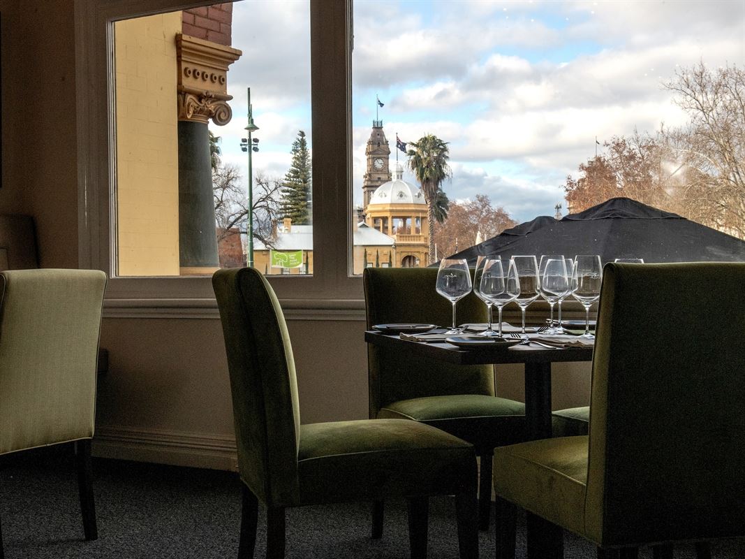 Combining the goodness of food with the love of meeting and serving great people, those seeking inspired fare in Bendigo head along View Point to find Alium Dining. Set in the former Royal Bank, this elegant restaurant offers contemporary fine dining alongside a selection of the best of Central Victorian wines in stylish surrounds of green velvet, chandeliers and dark wood tables. Sit and enjoy the view of the historic Alexandria Fountain and Rosalind Park as you choose from à la carte, or Chef's degustation, perhaps starting with Fremantle octopus, confit kipfler potato, chorizo and chimichurri. Roaring Forties lamb backstrap entices for the main with sides of broccolini, French fries and roast pumpkin; finishing with panna cotta, peach, nectarine jelly, verbena and apricot sorbet.