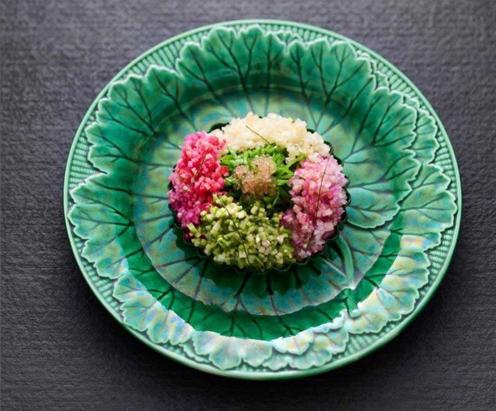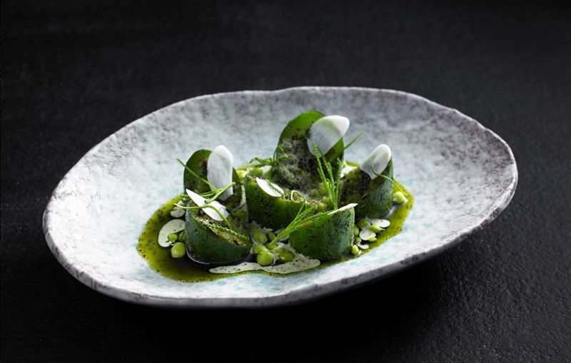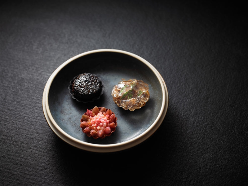 The Tea is Alive: tiny vegetables, deeply flavoured ‘tea’ of native red back ginger, pepper leaf and Ching-Koong tea.