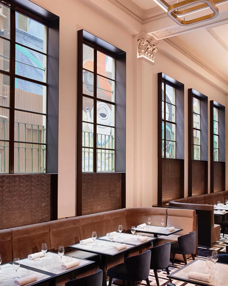 Celebrating Melbourne’s history of Italian immigrants and evolution into a cosmopolitan culinary city, Luci is a contemporary Australian restaurant housed within the grand hall of the Equity Chambers Building on Bourke Street. Its art deco-style dining room – designed by Bates Smart – provides a sophisticated backdrop to the Mod Oz menu with Italian accents; think breakfast plates such as eggs Benny - poached egg, smoked salmon and Hollandaise on a buttermilk crumpet. Dine in the evening over baked scallops, fennel spiced butter, crispy shallots and chervil; before tagliatelle with Moreton Bay bug, red cabbage and olive crumb. For the main, opt for grain-fed sirloin, roasted carrot purée, silverbeet and grain mustard; finishing with lemon thyme panna cotta, sorbet, strawberry and meringue.