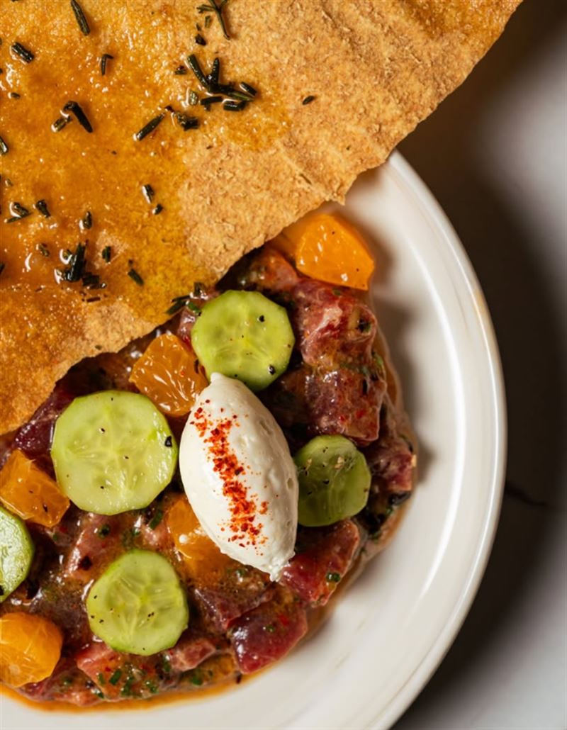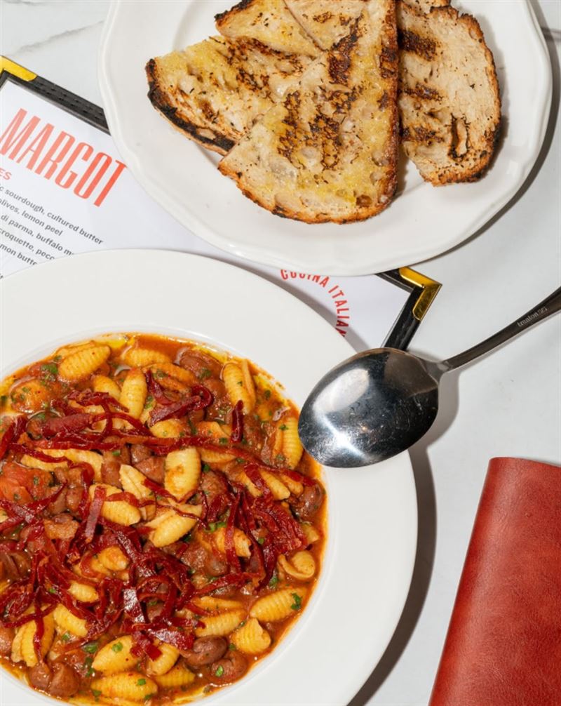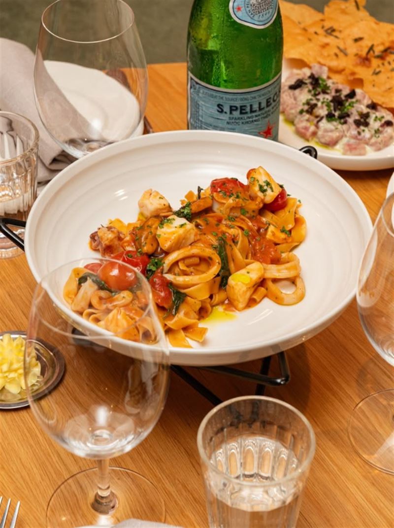 With a custom-built open Basque grill at the heart of the kitchen, Margot Osteria on Barrack Street in the middle of Sydney’s CBD offers a modern twist on classic grilling techniques, delivering an authentic and flavourful dining experience. Whether stopping by for a quick coffee and breakfast, a business lunch, or afternoon snack and drink, Margot’s relaxed yet sophisticated setting is perfect for any occasion. Join early risers for smoked salmon eggs royal on a toasted muffin, with Hollandaise and espelette; or bring the gang for dinner and begin with yellowfin tuna crudo, lemon verjus and flatbread. For the main, think choices like pacchero allo scoglio with mussels, squid, blue eye cod and confit tomato; or steak frites with beef jus and sides of charred corn and steamed broccolini.
