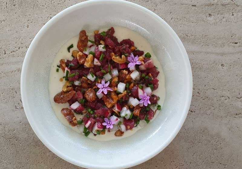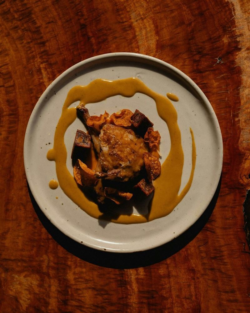 Sip an estate wine on the outdoor deck overlooking the vines and mountains at Mimosa Wines, a family-owned and operated vineyard, restaurant and cellar door on Bermagui Road in Bermagui. Nestled in the heart of the Far South NSW Coast, Mimosa is a modern restaurant offering à la carte lunch and a more refined set menu for degustation dinners. With scenic seating options inside and out on the deck, expect a relaxed fine dining experience paired with a boutique Australian and New Zealand wine list. Start with an entrée of Tathra Place quail, sweet potato, tandoori and galangal; while those with larger appetites may opt for Narooma sea bream, asparagus, black sesame and yuzu, making sure to leave room for a decadent dessert of mango, pistachio, yellow capsicum and basil.