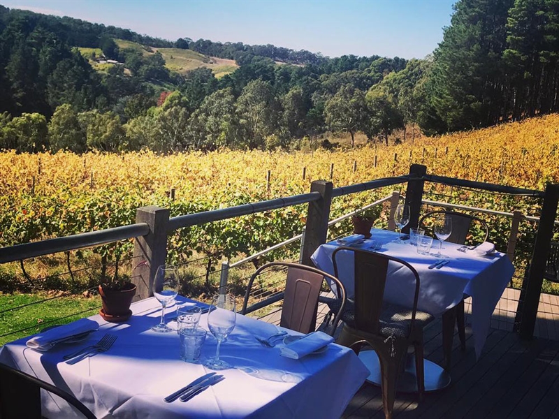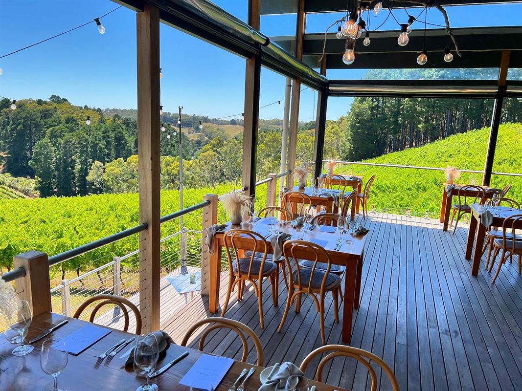 Mt Lofty Ranges Vineyard, restaurant has stunning views of the hills and vineyards.