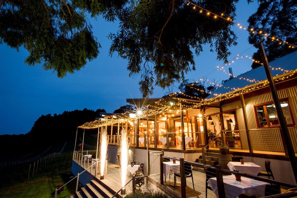 Mt Lofty Ranges Vineyard is a five star winery and award winning chef hatted restaurant situated half an hour from the centre of Adelaide. We offer a rustic ambiance and elegant yet understated backdrop for guests. Start your function with a glass of sparkling on our lawn area under the magnificent flowering gum tree or mingle on one of the three decks. The vineyard is lit up beautifully at night with the large gum tree uplit from underneath. For further information for your upcoming function and to receive our functions package please email reservations@mtloftyranges.com.au