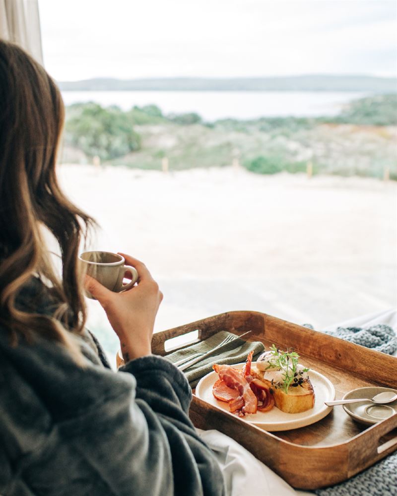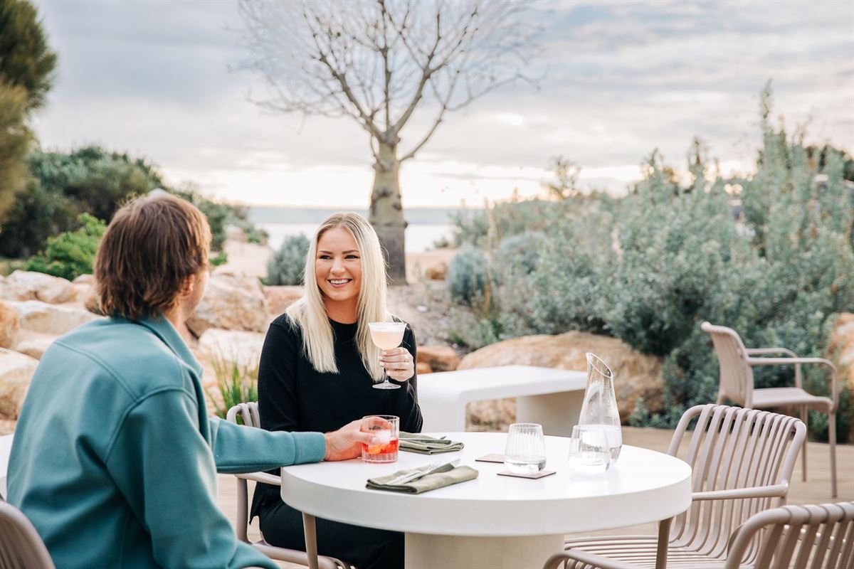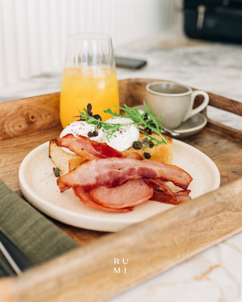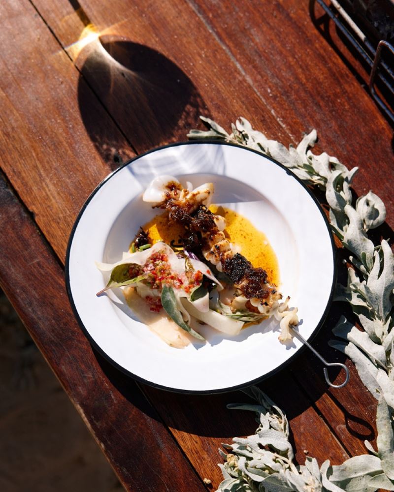 Experience fine dining from bounty caught outside the door for the epitome of wild indulgence at Rumi on Louth’s Samphire restaurant on Louth Island. A unique menu celebrates the bountiful local seafood and native ingredients foraged from the island, infusing them with the vibrant and enticing flavours of Mediterranean cuisine, as you dine in a coastal vibe of rattan and cane chairs, polished concrete floors and potted greenery. Start your day the right way with avocado on a bagel with whipped ricotta, lime dressing, toasted seed cracker and poached eggs; while the lunch crowd devours pizza slices topped with vongole, mozzarella, tomato and nduja. For evening dining, think squid skewers, zhoug and green oil to begin, followed by duck breast, roasted beetroot and caramelised shallot.