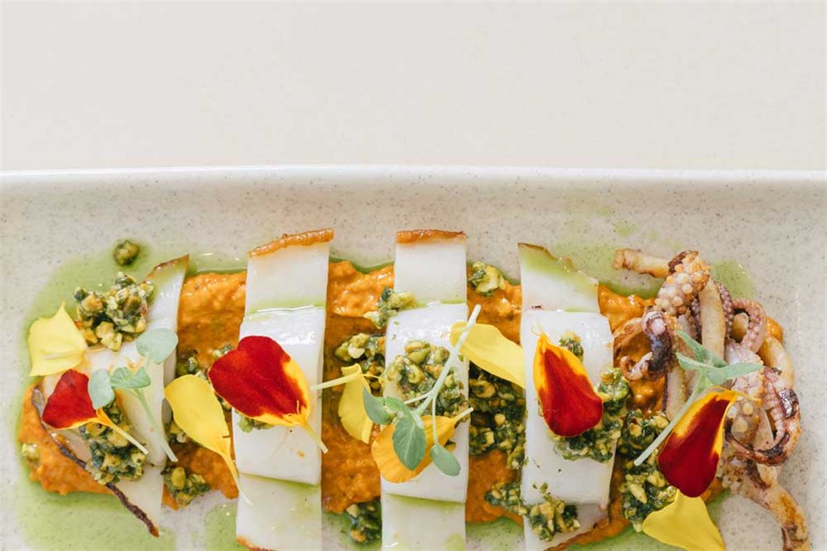 Samphire offers a unique dining experience with local seafood and foraged ingredients, blending island flavours with vibrant Mediterranean cuisine.