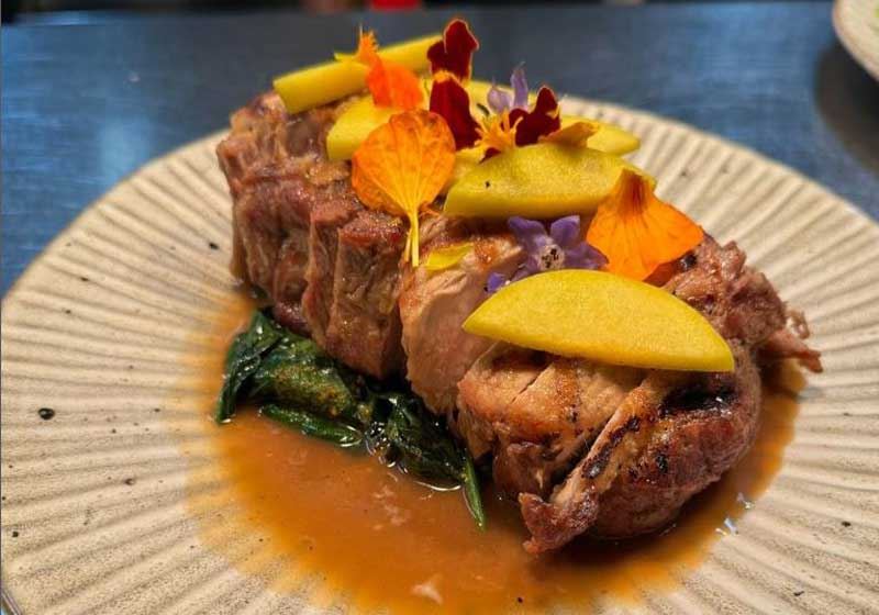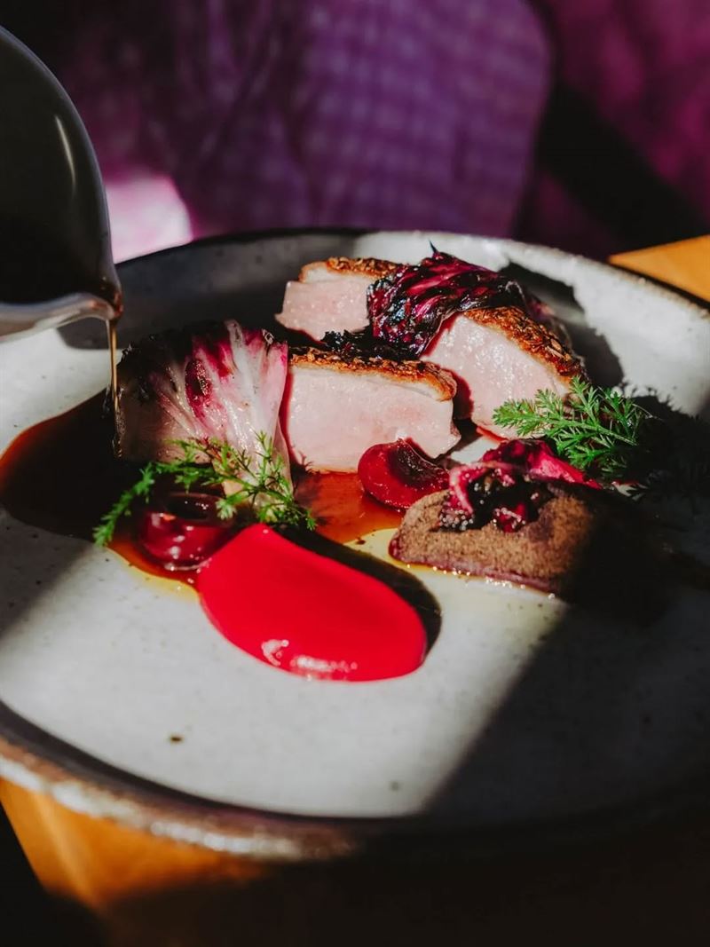 A seasonal menu offering dishes like glazed duck breast, baby beetroot, caraway, amaranth, boysenberry and duck jus.