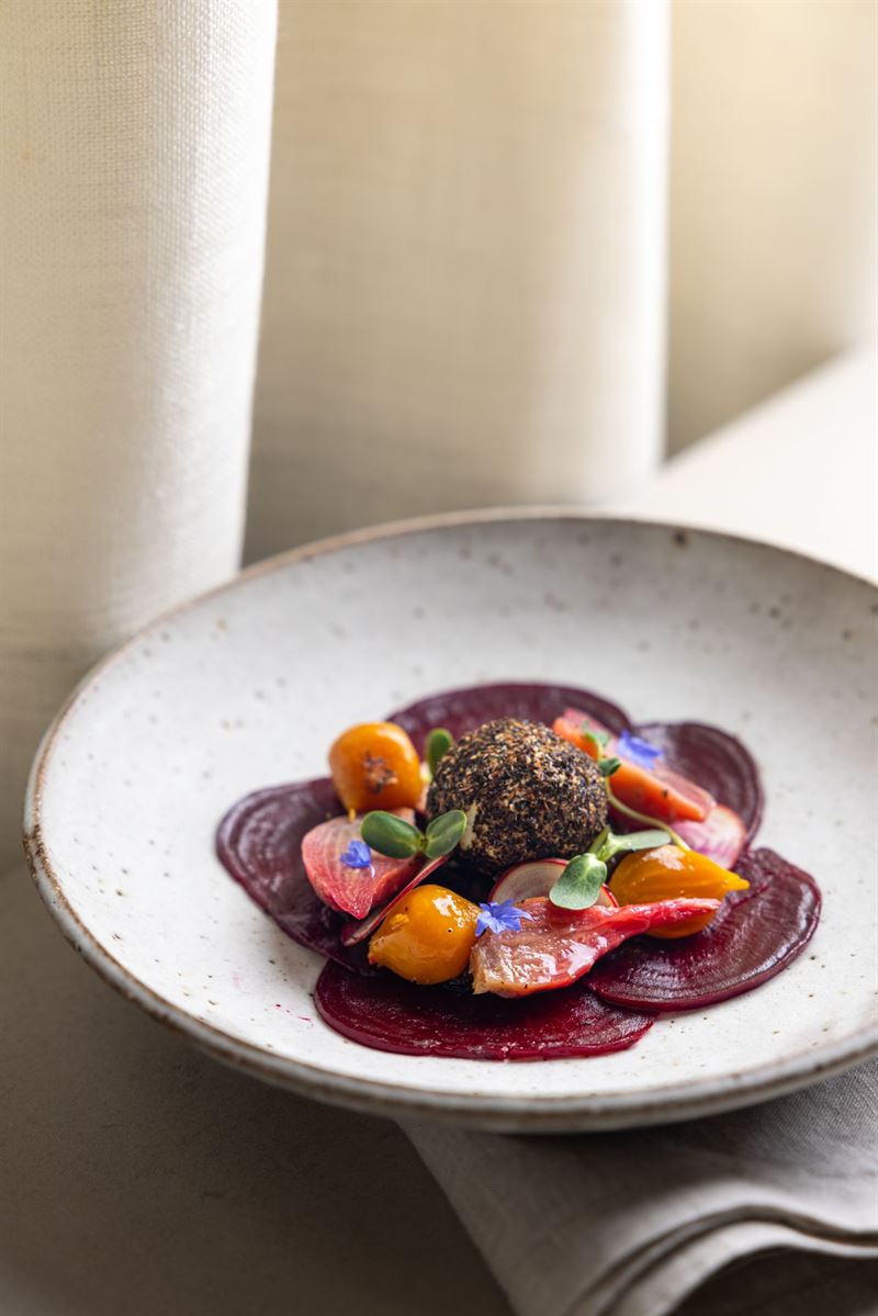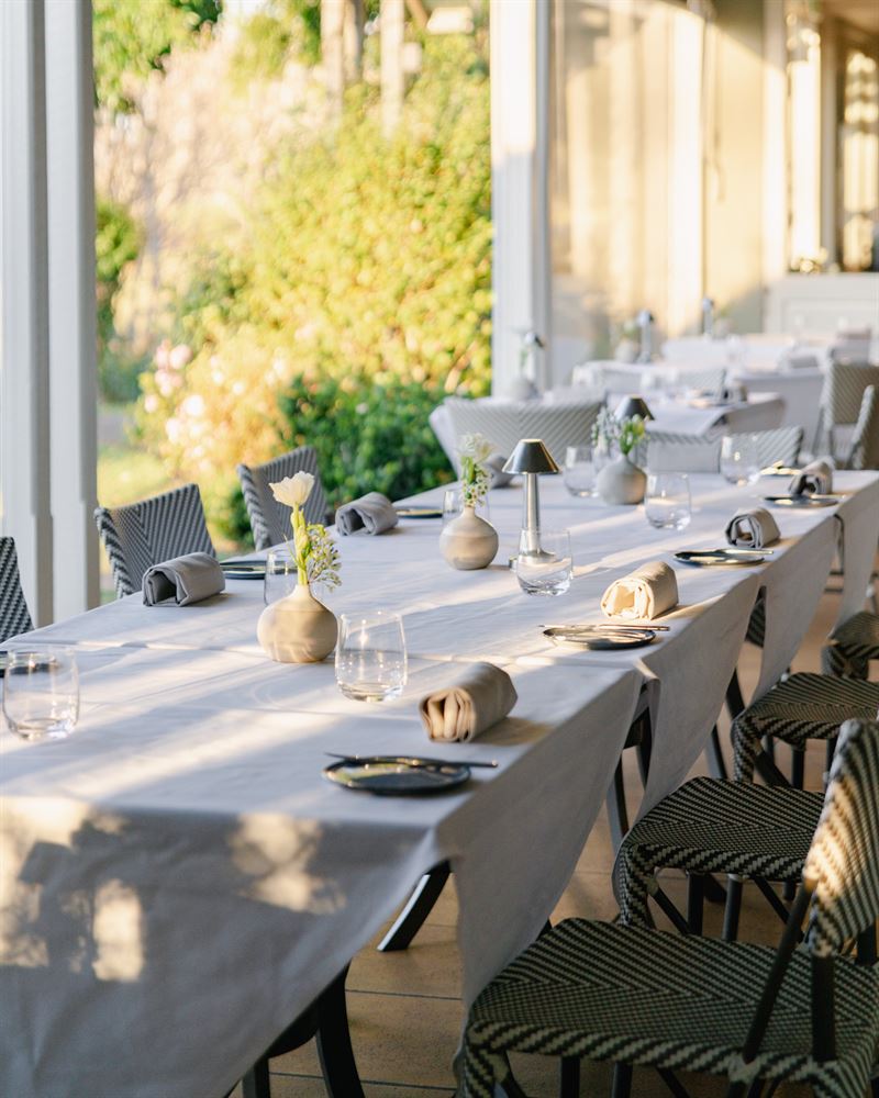 A seasonally changing 5-course degustation menu, 2 or 3-course à la carte menu, breakfast and all-day dining options like cheese and charcuterie platters. Extensive Champagne and wine list.