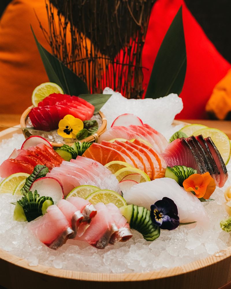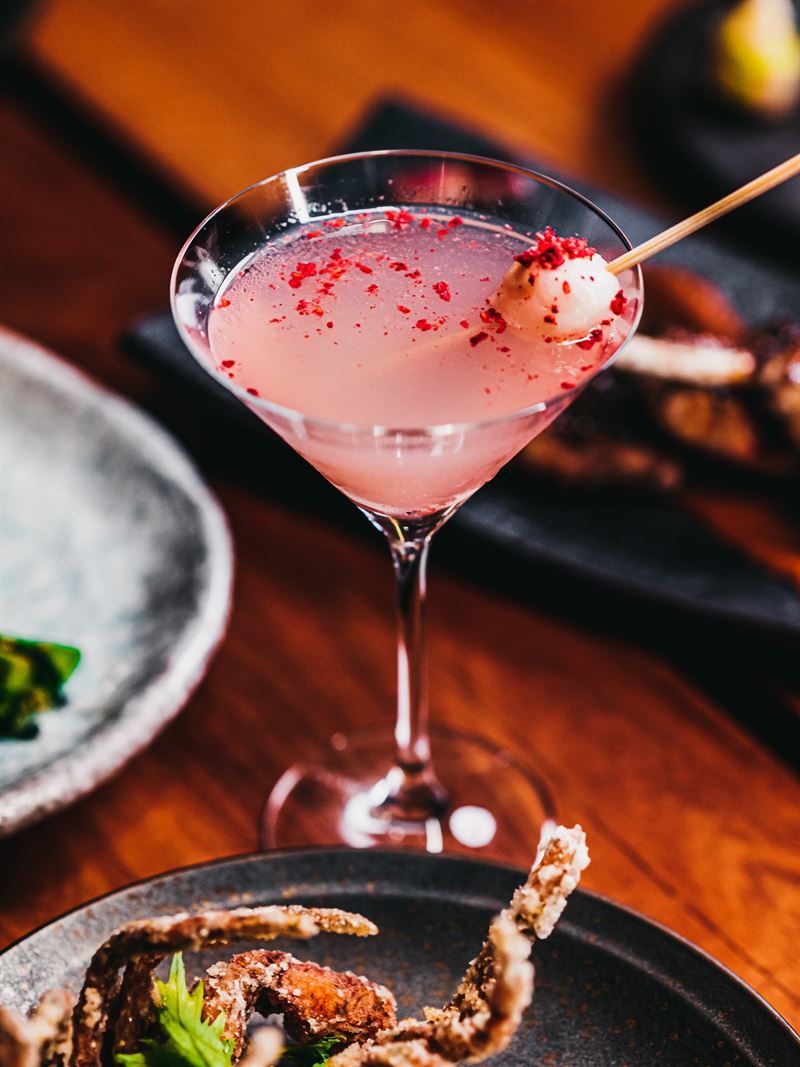 Sashimi omakase, scampi nigiri, Moreton Bay bug tempura and from the robata grill, black cod, lamb cutlets and Wagyu Tajima. Lychee Martini and Lychee Jasmin Mojitos from the bar