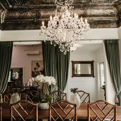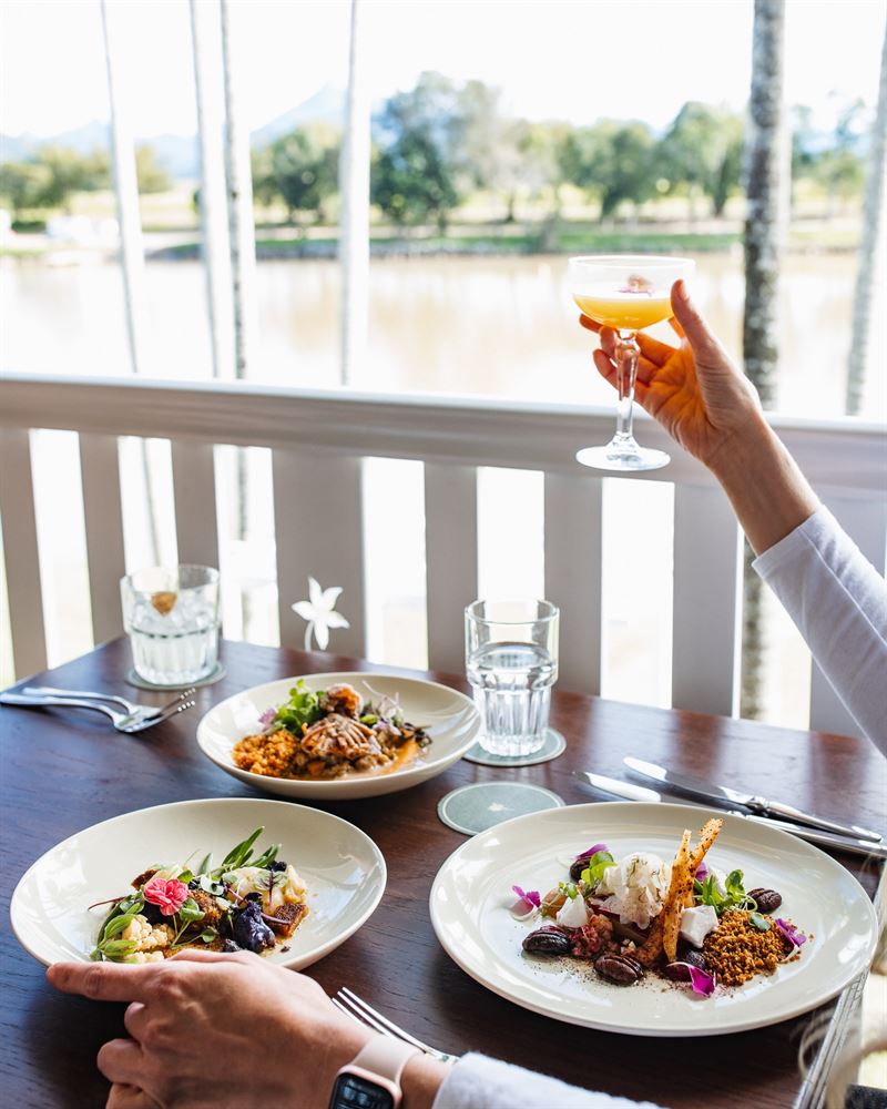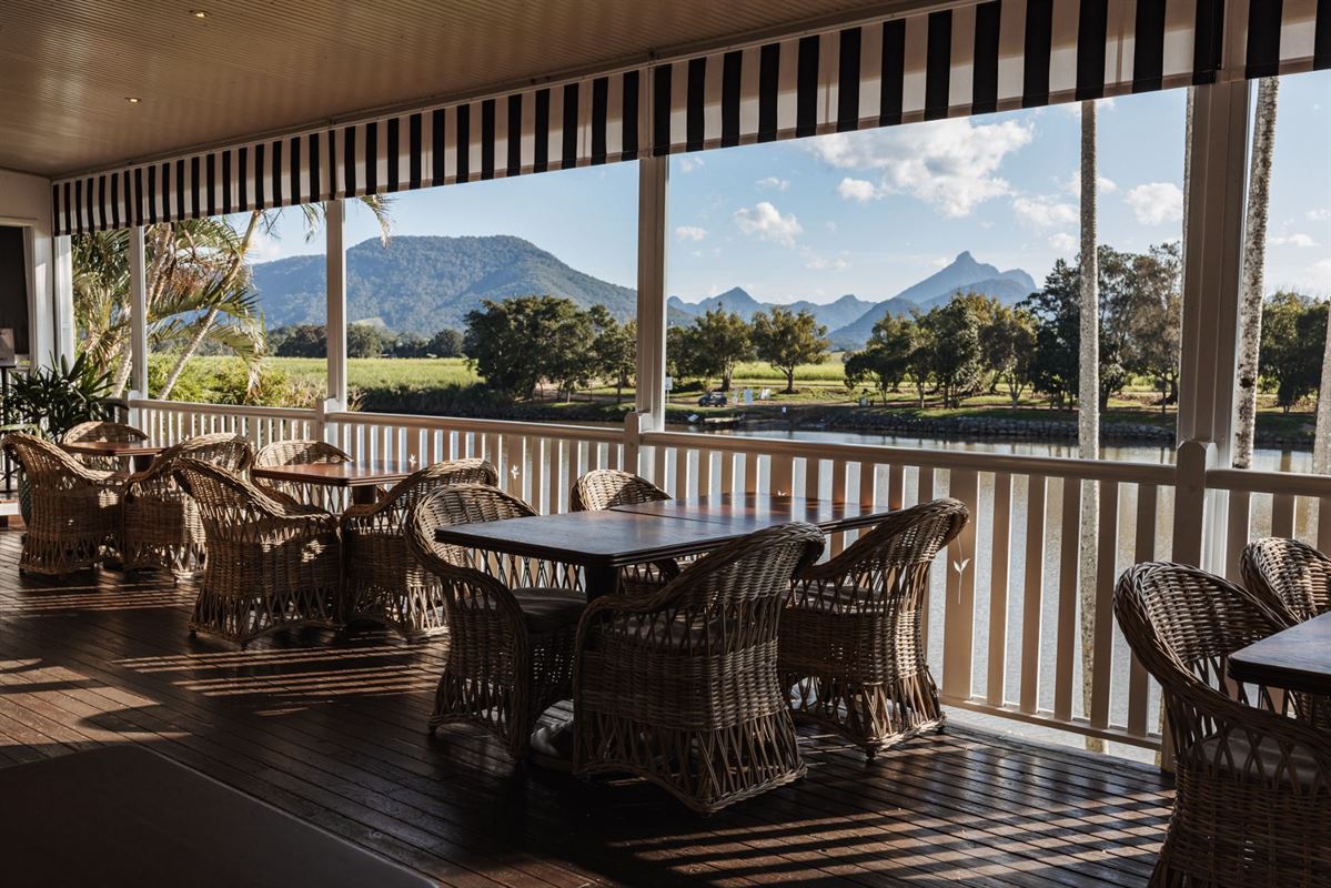 Restaurant dining ~ offers lunch and dinner menu only and we recommend you reserve in advance. dine in either the ambient dining room, under patterned pressed metal ceilings and palm fans; or out on the undercover river verandah, with it's panoramic river and hinterland views. for a sophisticated experience savour the elegance of the chandelier private dining room. Open Thursday to Sunday